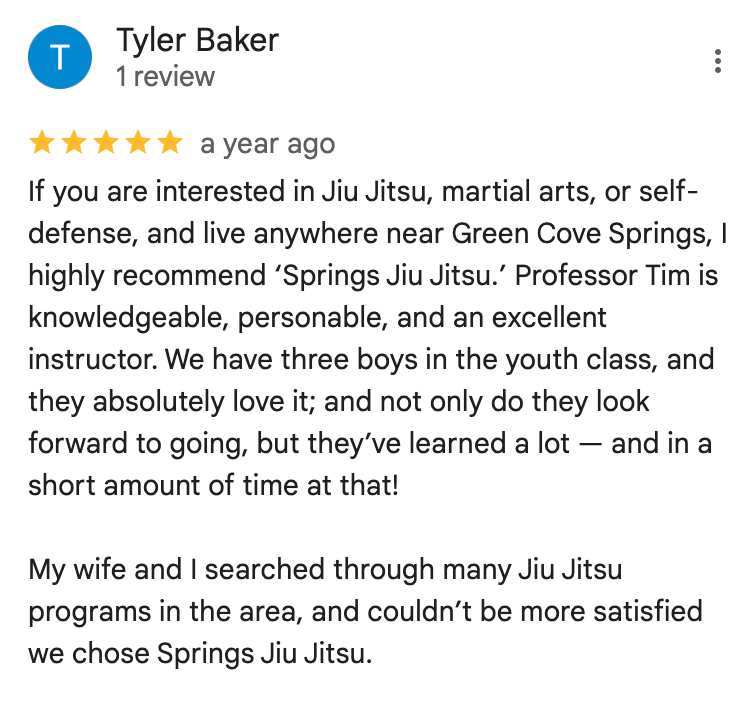 Additionally, you can always give us a call. We would love to chat with you about what we do, and to help you determine if our martial arts classes at Gracie Jiu-Jitsu Green Cove Springs would be a great fit for you and your family!